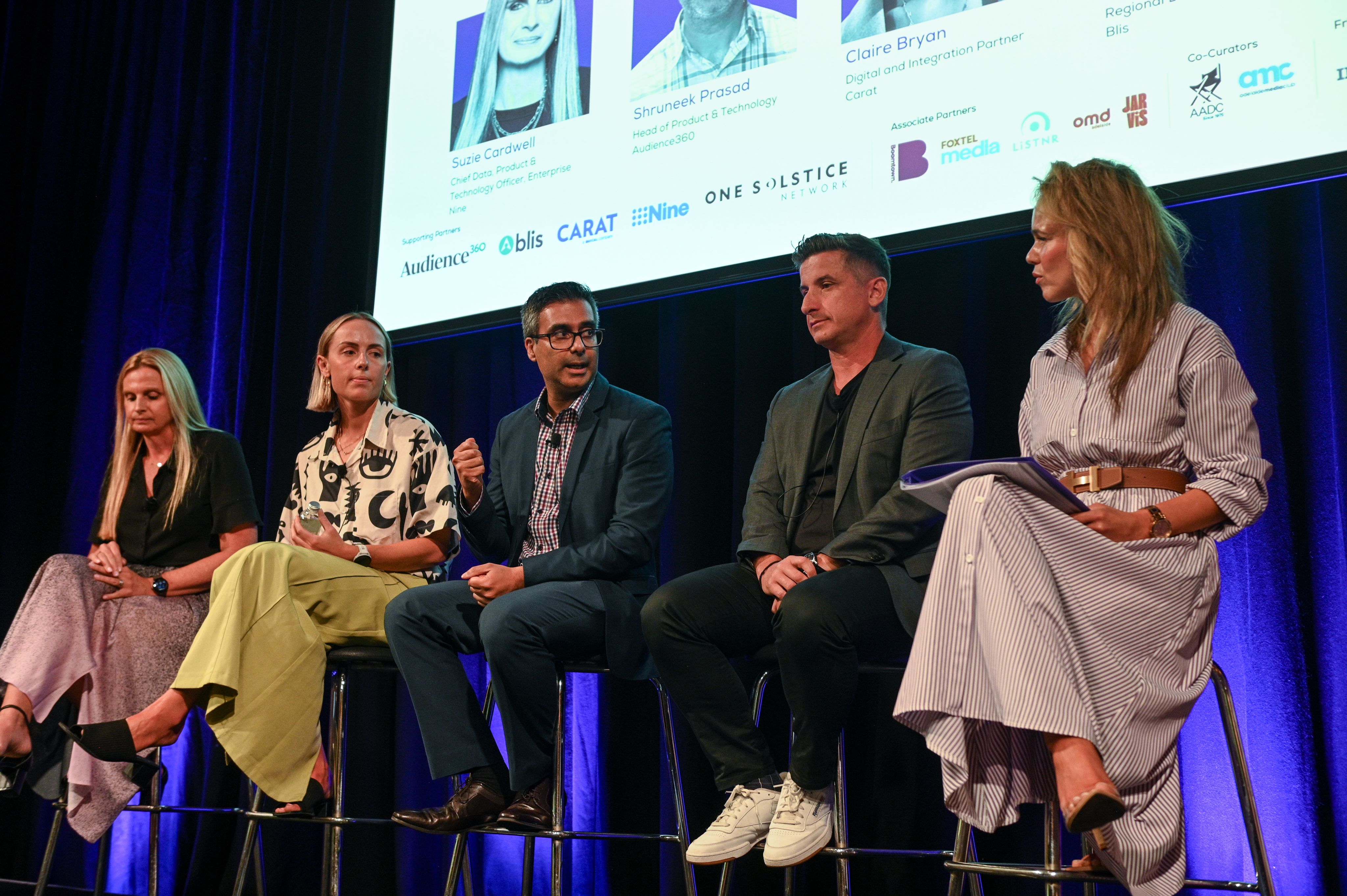 Nine Chief Data, Product & Technology Officer, Enterprise Suzie Cardwell, Audience360 Head of Product & Technology Shruneek Prasad, Carat Digital & Integration Partner Claire Bryan and Blis Regional Director ANZ Elias Psarologos